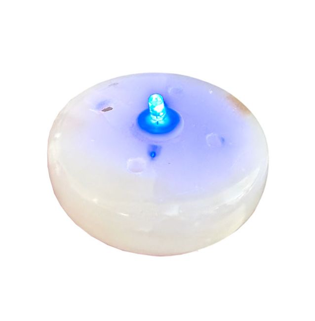 Base de ônix clara que muda de cor graças a um LED. Ideal para lâmpadas de cristal de sal branco ou selenita. Conecta-se a uma porta USB. Para lâmpadas de sal e selenita.