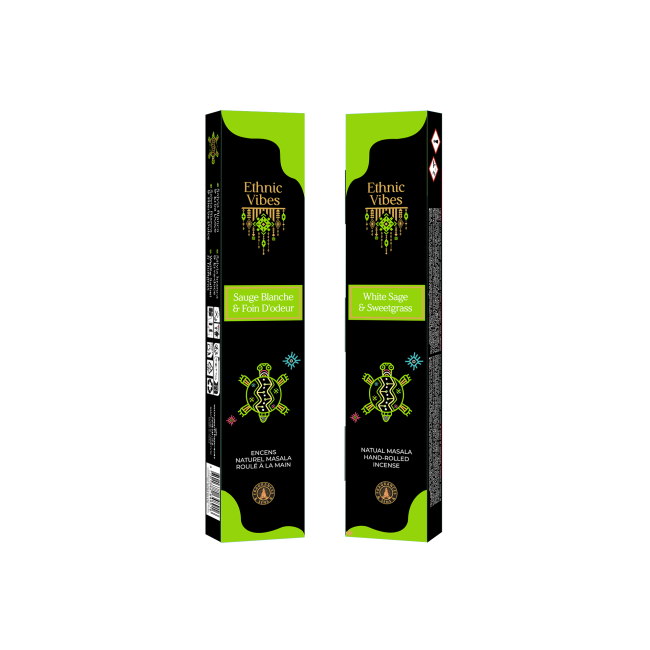 Fragrâncias e Sens Incenso Étnico Vibes Sálvia Branca e Fragrância de Feno masala 15g