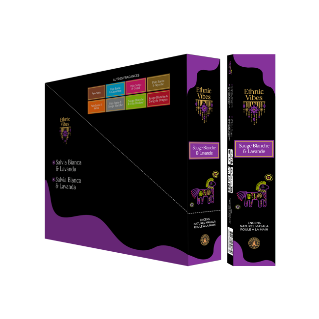 Incenso Fragrâncias e Sentidos Vibrações Étnicas Sálvia Branca e Lavanda masala 15g