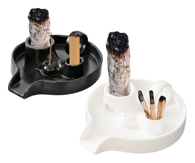 Porta-incenso de cerâmica branca para Palo Santo e Sálvia Branca 18,50 cm