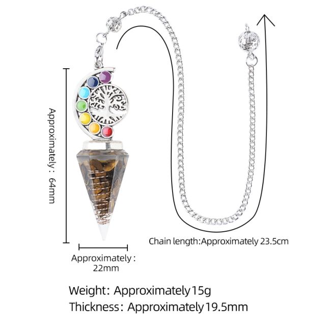 Pêndulo de radiestesia de orgonite com cristais de pedra natural.