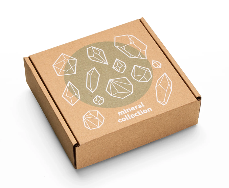 Caixa colecionável com 9 pedras roladas de todo o mundo.