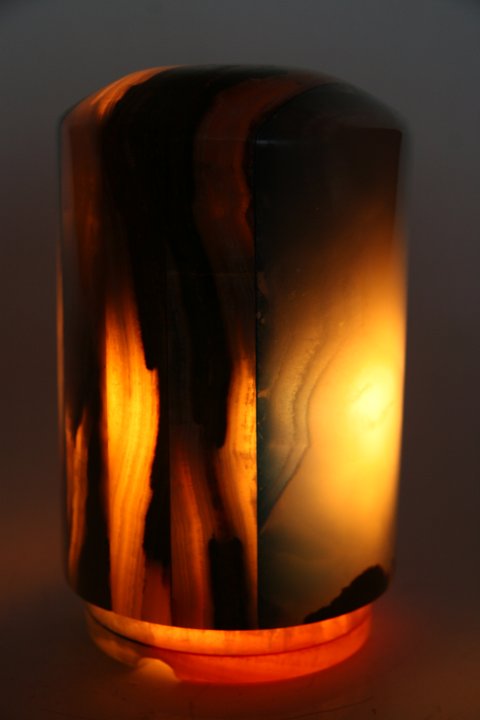 Luminária Esférica PatchWork. Uma vez acesa, a luminária de ônix emite uma luz suave em tons quentes de amarelo-alaranjado, propícia ao relaxamento (a cromoterapia demonstrou que a luz laranja possui efeitos energizantes e relaxantes). Esta luminária de ônix é uma peça decorativa excepcional, essencial para o seu bem-estar.