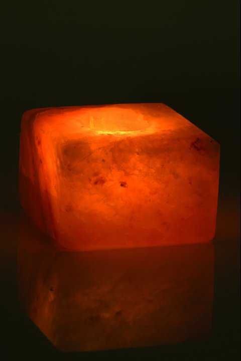 Suporte para vela em forma de cubo de cristal de sal natural