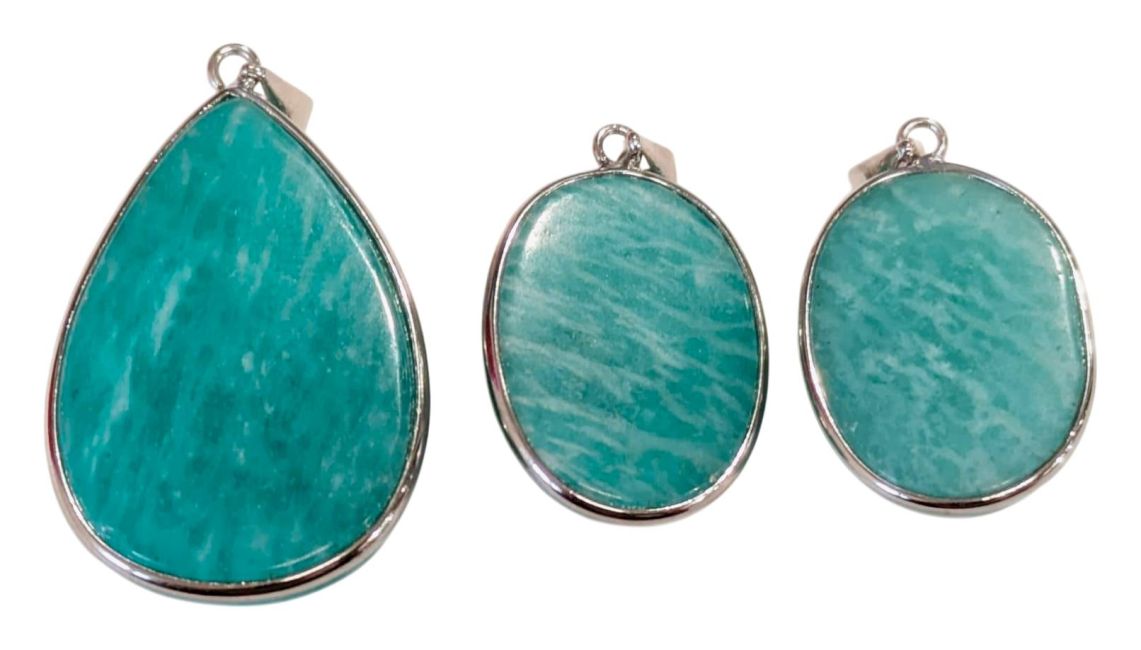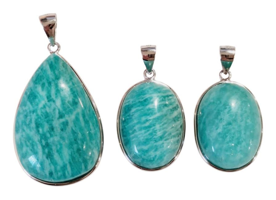 Pingente de Amazonita AA+ em Prata de Lei 925, 3 peças, 14,32g