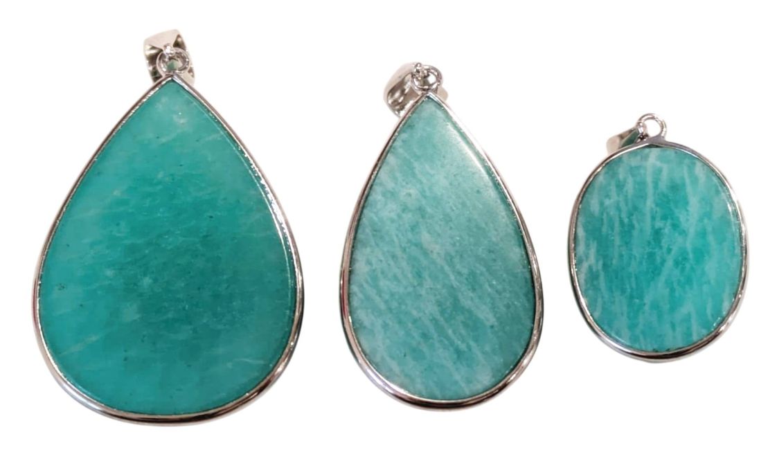 Pingente de Amazonita AA+ em Prata de Lei 925, 3 peças, 16,77g