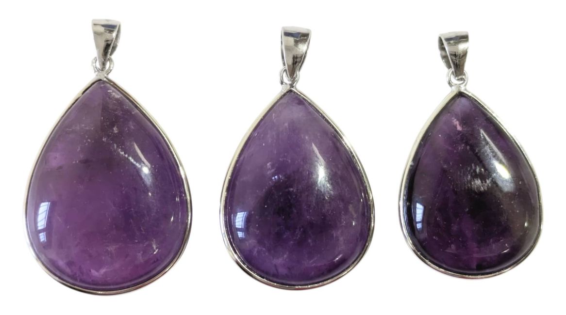 Pingente em prata de lei 925 com ametista AAA, 3 peças, 14,74g