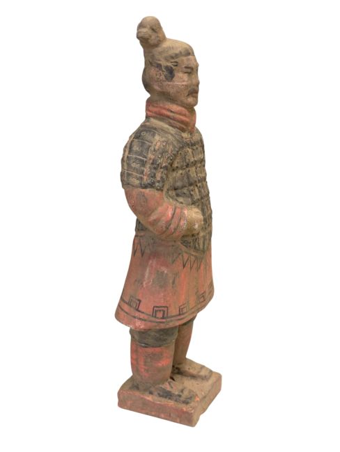 Estátua antiga de guerreiro em terracota colorida, 26 cm