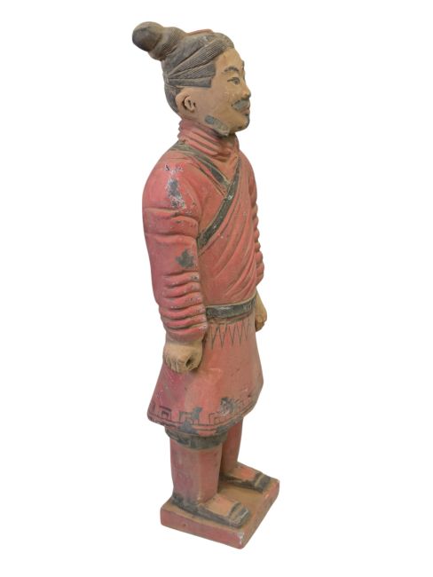Estátua antiga e colorida de guerreiro em terracota, 26 cm