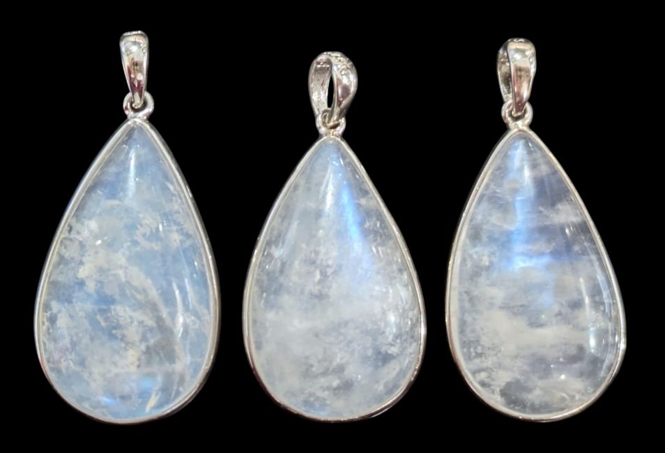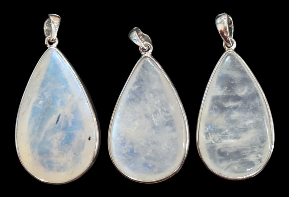 Pingente em prata de lei 925 com pedra da lua branca AAA, conjunto de 3 peças, 10,6g