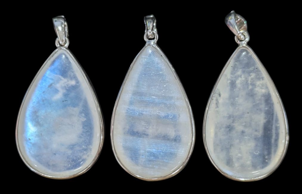 Pingente em prata de lei 925 com pedra da lua branca AAA, 3 peças, 11,3g