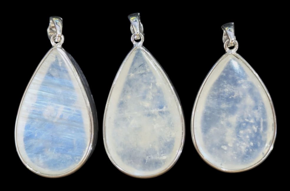 Pingente em prata de lei 925 com pedra da lua branca AAA, conjunto de 3 peças, 10,82g