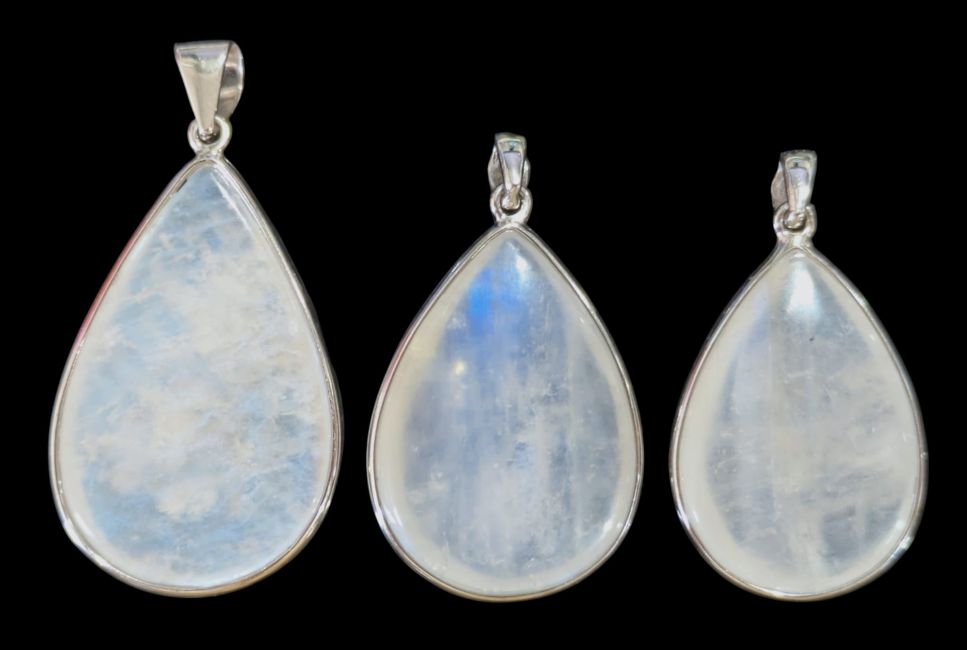 Pingente em prata de lei 925 com pedra da lua branca AAA, conjunto de 3 peças, 11,15g
