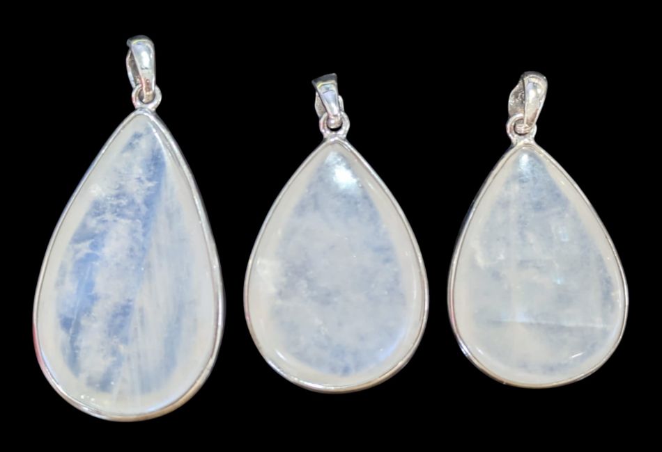 Pingente em prata de lei 925 com pedra da lua branca AAA, conjunto de 3 peças, 11,78g