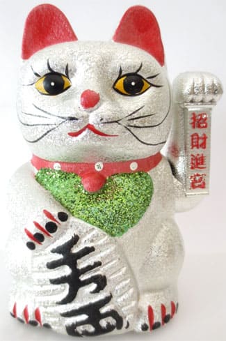 Gato da sorte prateado com braço amovível 18cm