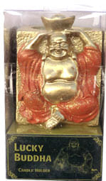 Castiçal de resina laranja Buda da Sorte 7cm
