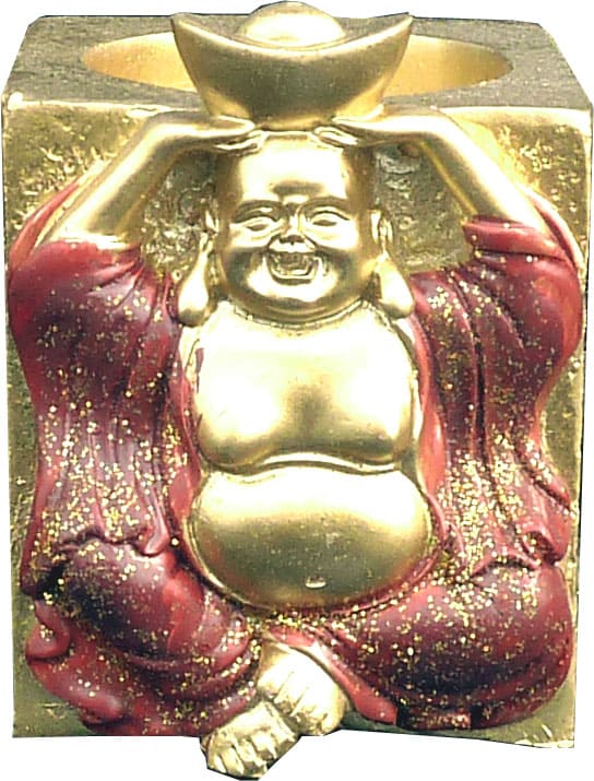 Castiçal de resina Buda Feliz Bordeaux 7cm