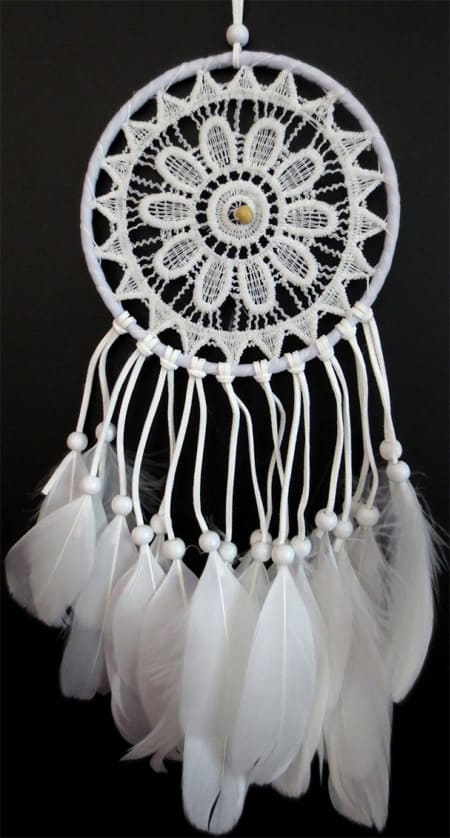 Apanhador de sonhos em tecido bordado e penas de ganso 15cm