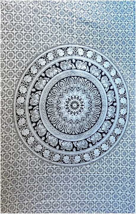 Pendurar mandala de elefante preto e branco