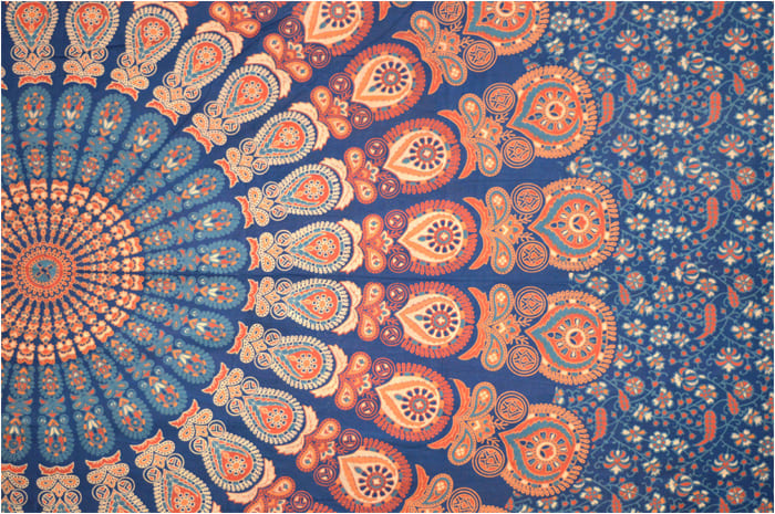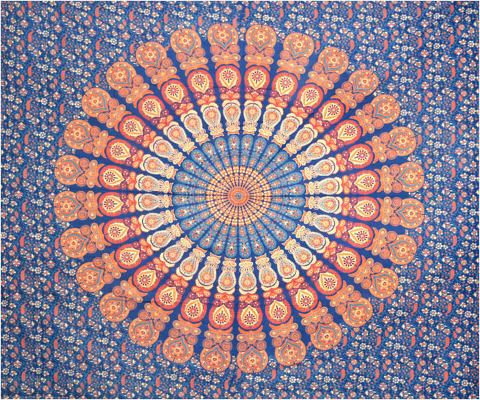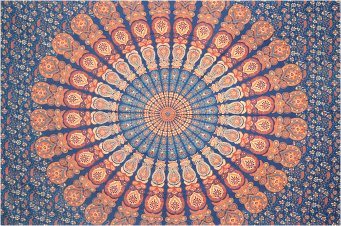 Pendente mandala azul escuro azul claro laranja e vermelho