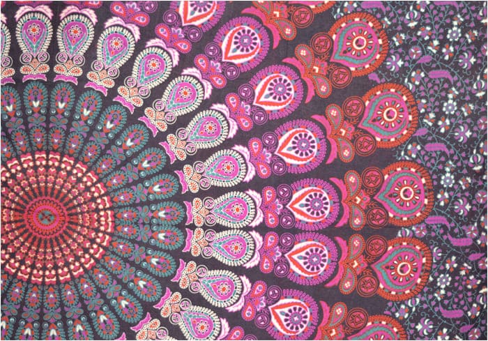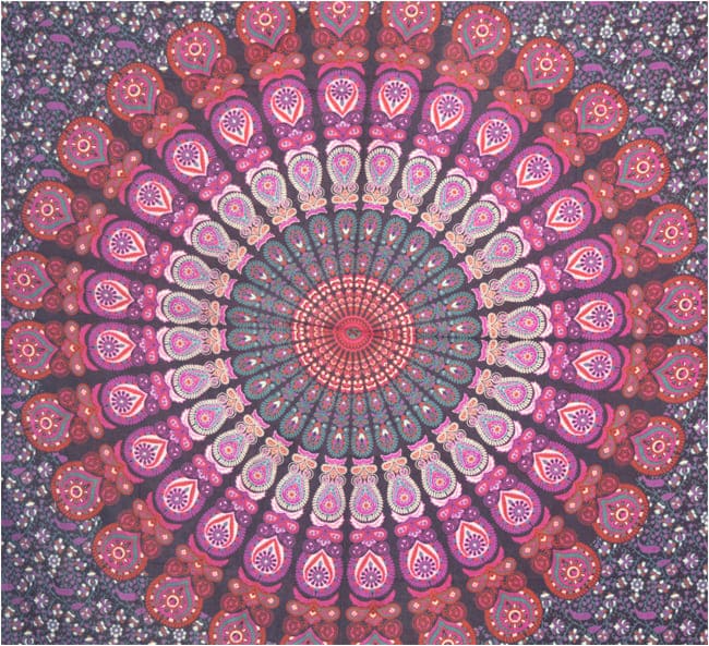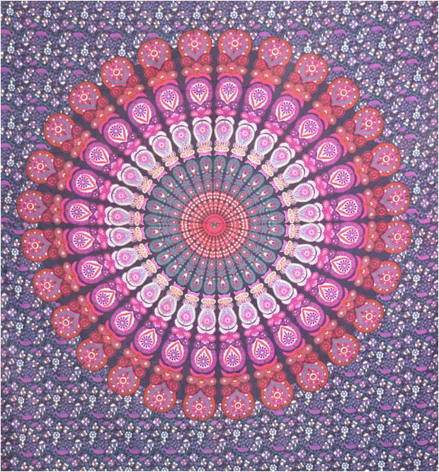 Suspensão de parede de mandala fúcsia laranja e azul petróleo malva