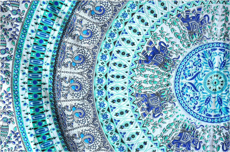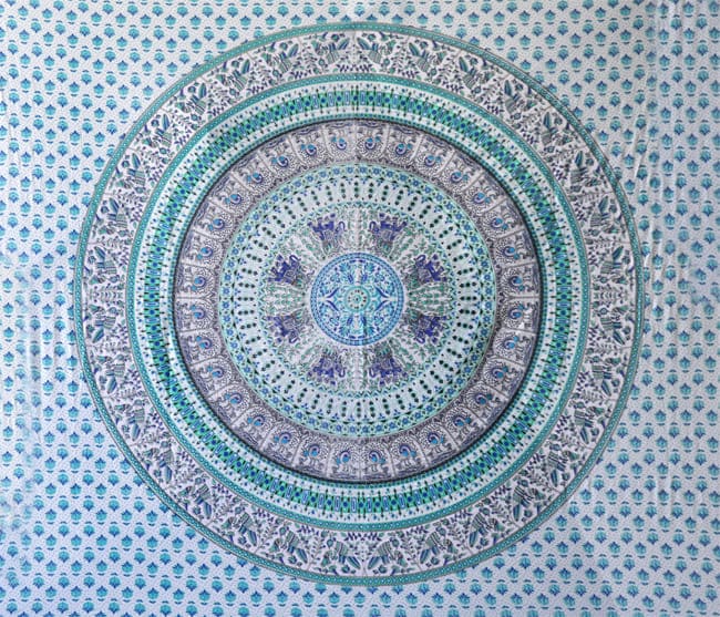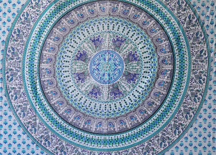 Pendurar mandala de elefante e pavão branco, azul e verde