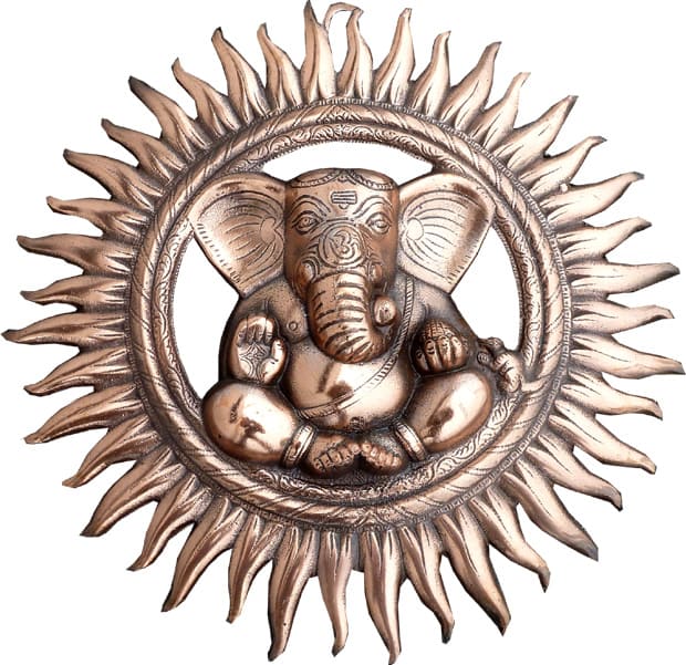 Ganesh e sol decoração de parede alumínio 33cm