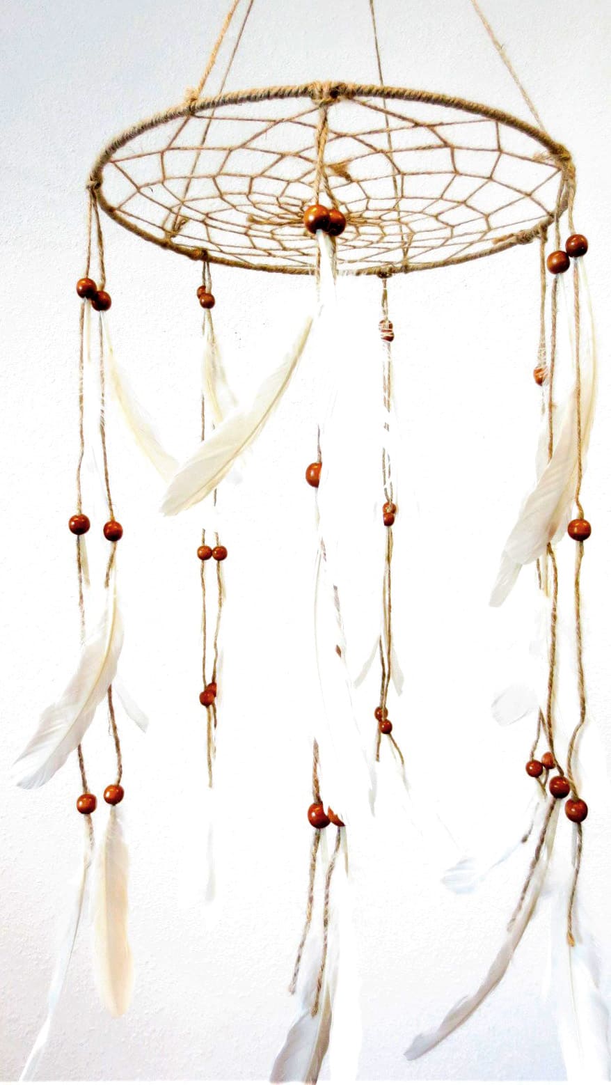 Apanhador de sonhos com penas e contas de madeira 33cm