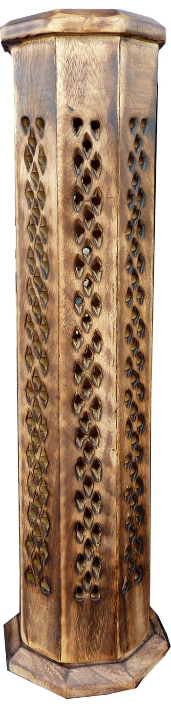 Porta-incenso de torre octogonal esculpida 30cm