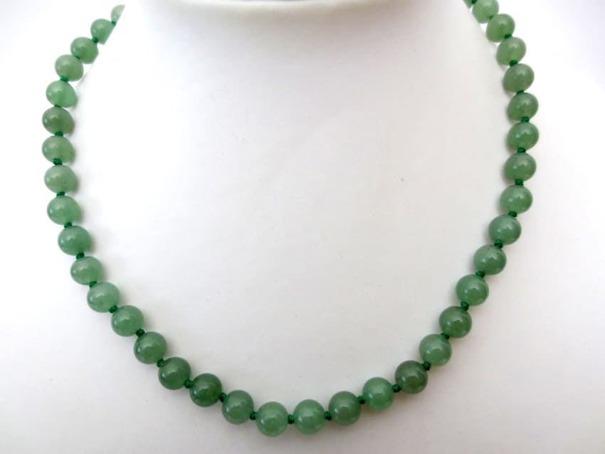 Colar de contas de jade verde 8mm