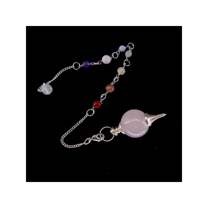 Pêndulo esfera quartzo rosa 7 chakras 4cm