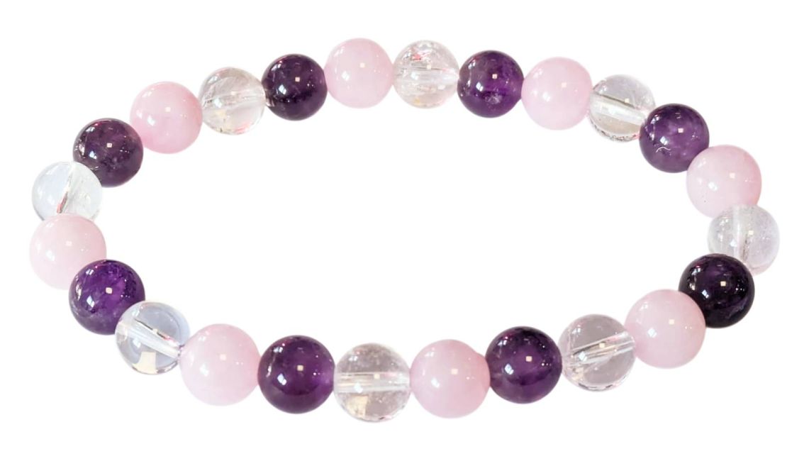 Pulseira Ametista e Cristal de rocha e Quartzo rosa A perles 8mm