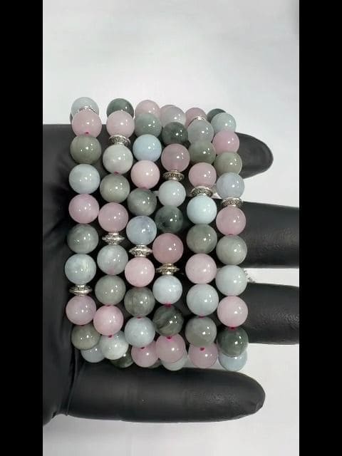 Quartzo Rosa Água-Marinha 8mm Charms e Pulseira Olho de Falcão