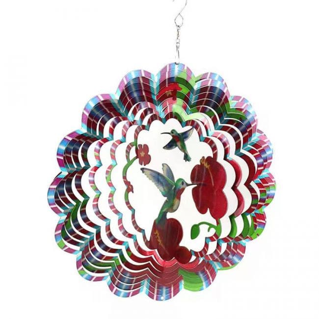 Sino de vento em aço 3D multicolorido Beija-flor 30cm