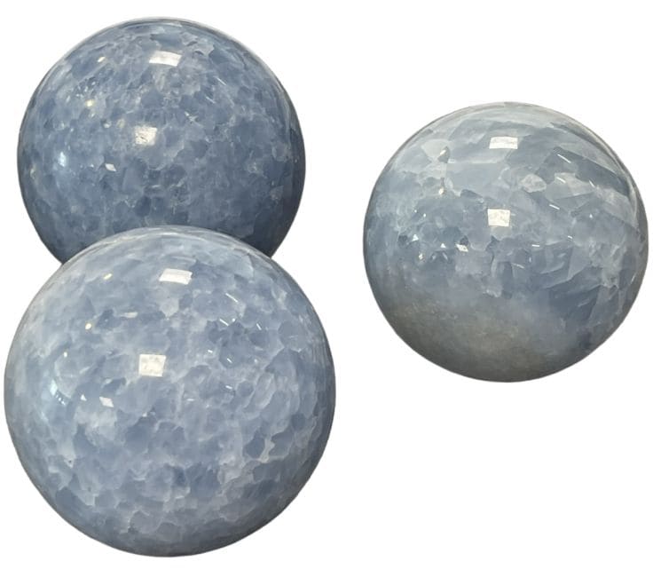 3 Esferas Calcita azul polida 1.724k