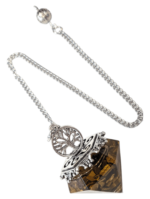Pêndulo Orgonite Árvore da Vida Olho de Tigre 6 faces