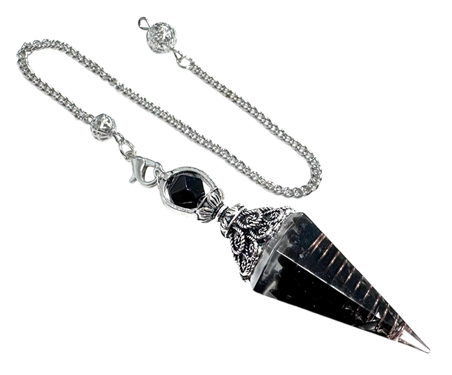 Pêndulo divinatório de orgonite para radiestesia com cristais de pedra natural.
