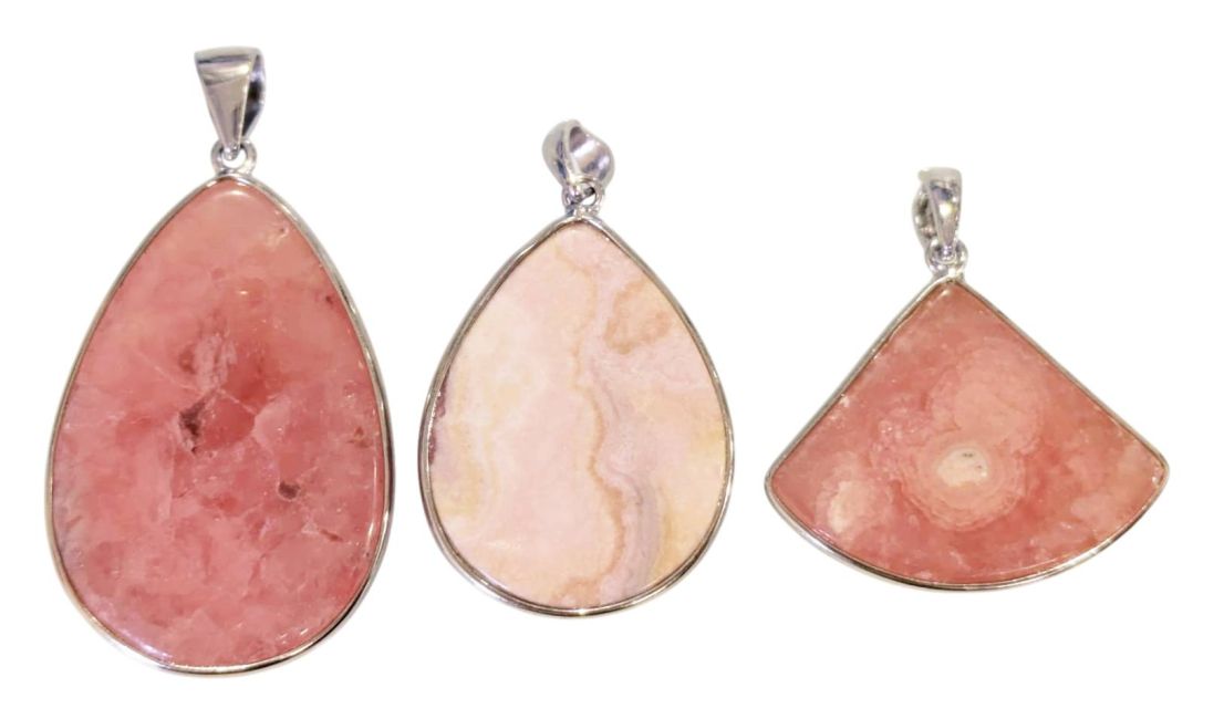 Pingente de Rodocrosita em Prata de Lei 925, Argentina AA+, 3 peças, 14,68g