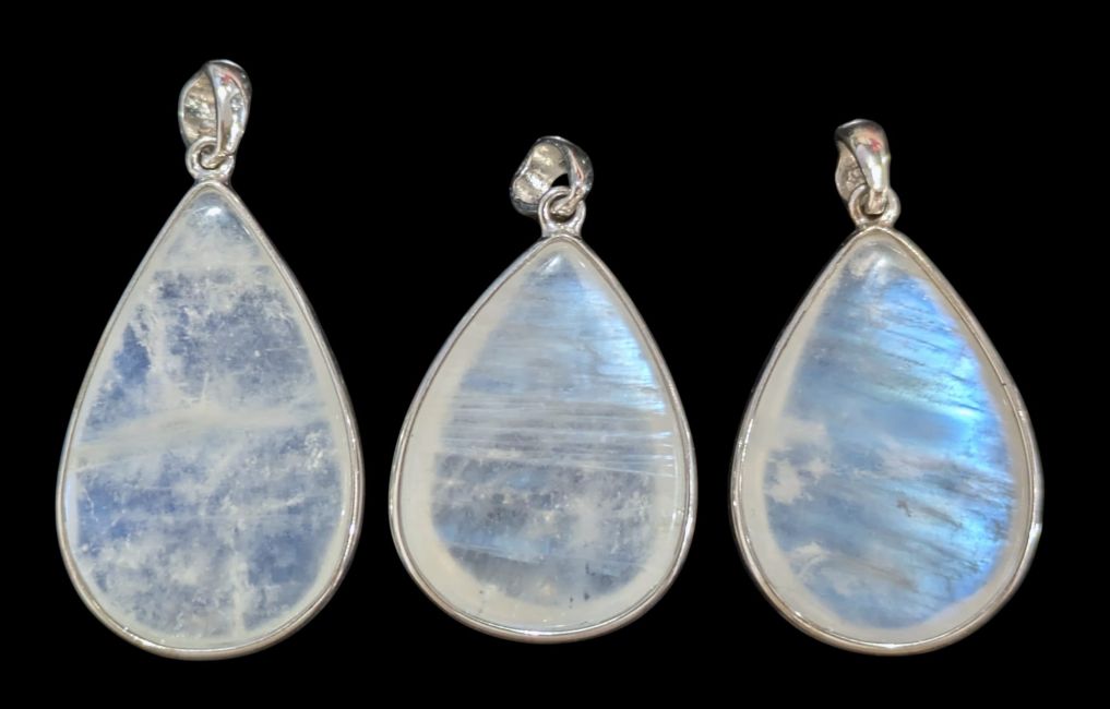 Pingente em prata de lei 925 com pedra da lua branca AAA, conjunto de 3 peças, 10,23g