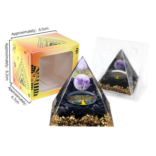 Pirâmide de Ametista Orgonite e Obsidiana Negra Árvore da Vida