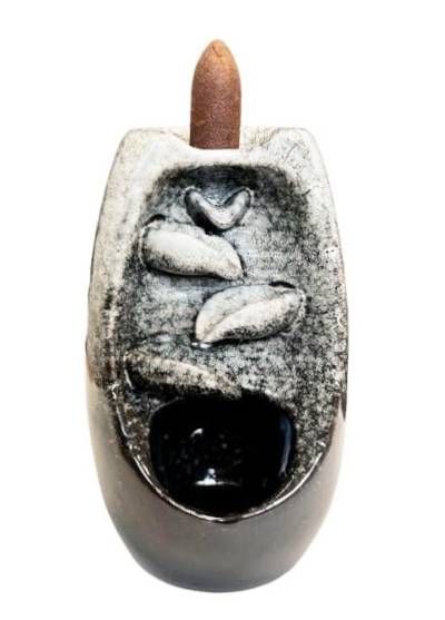 Porta-incenso Backflow Cerâmica Bege Cascata de Folhas 13cm