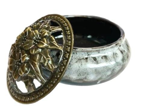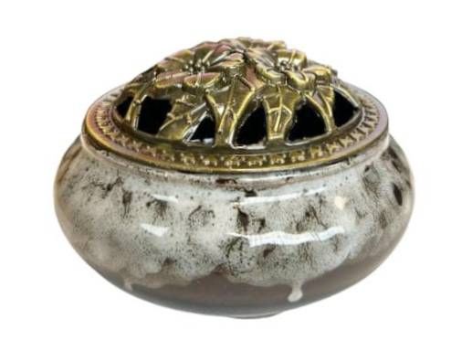Porta-incenso de cerâmica castanho e cinzento 10cm